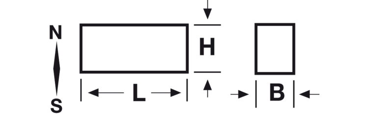 The SrFe magnetic cores are composed of about 80% iron oxide and 20% compressed strontium ferrite and then sintered. Press forming takes place in a magnetic field. In this way, a preferential orientation (anisotropy) is determined in the magnetic core and thus a considerable improvement in remanence is obtained. Reverse magnetization at the preferred orientation is not possible. The magnetic cores below are magnetized with the preferred orientation indicated N-S. Strontium ferrite magnetic cores correspond in their hardness and fragility to a ceramic material. Machining is only possible by diamond grinding. They are insensitive to demagnetizing influences and retain unlimited magnetism. Like any ceramic material, they are insensitive to weather conditions, do not oxidize and are resistant