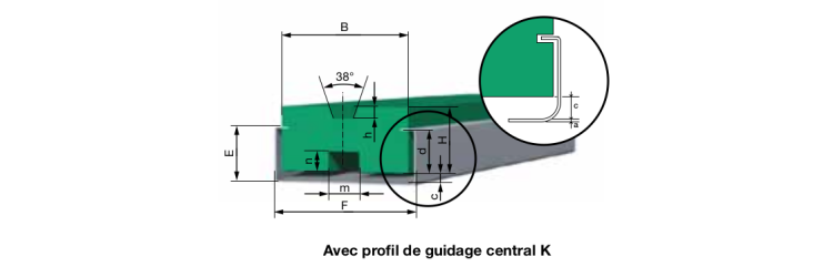 Ce profil de glissement, particulièrement adapté aux courroies BRECO®, est en matière PEHD polyéthilène haute densité de couleur verte. La courroie est guidée par le profil centrage trapézoïdale.